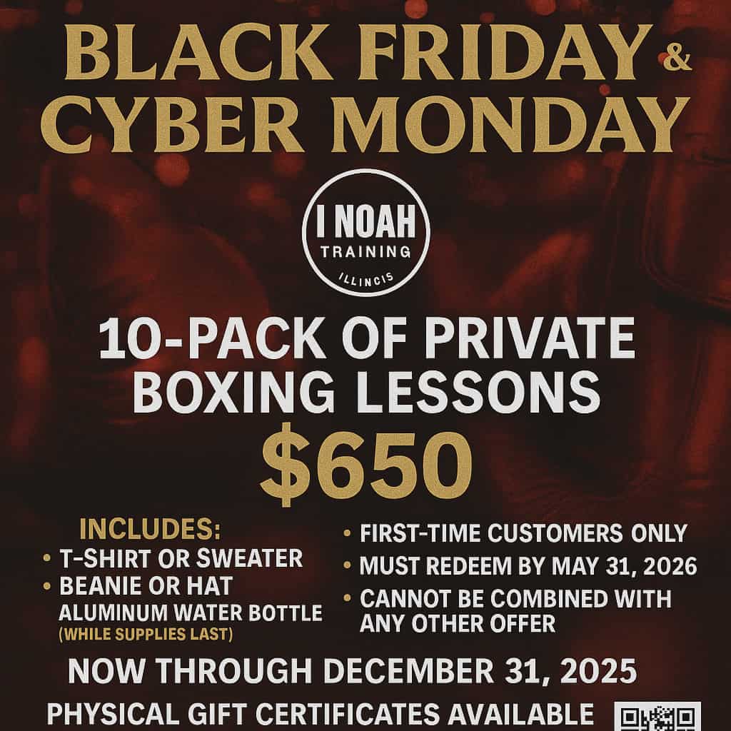 This gift certificate is for ages 5+, cannot be combined with any other offer and must be used by May 31st, 2026. 10 boxing one hour private lessons for $650.00 a savings of $200. Then you have the access to group classes, open gym, I Noah Shirt & Beanie and it saves even more. Email Noahg76@gmail.com once you have purchased and I can have a physical gift certificate available. Makes a great stocking stuffer!